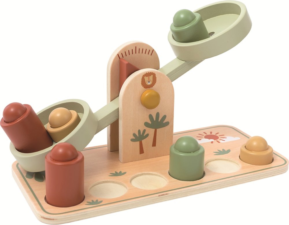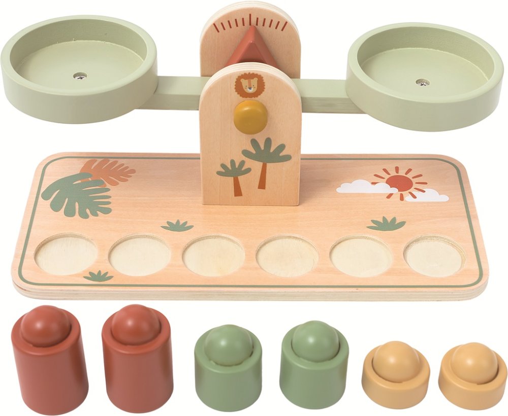 Kolorowa dziecięca waga miskowa w pastelowych kolorach z motywem safari to wspaniała pomoc w pierwszym odkrywaniu świata ważenia i porównywania. Zainspirowana pedagogiką Montessori, wspiera rozwój logicznego myślenia i małej motoryki. Dzięki sześciu odważnikom o trzech różnych wagach (zawsze po dwa kawałki) dzieci uczą się rozpoznawać różnice w wadze i same badają, który przedmiot jest cięższy lub lżejszy. Czy pluszak jest cięższy czy lalka? Porównuj wagi zabawek w dziecięcym pokoju lub drobnych przedmiotów w domu. Waga jest idealna do zabawy i nauki w domu i w przedszkolu. Główne cechy: 7 częściwaga miskowa z 6 obciążnikamirozwija logiczne myślenie i małą motorykęinspirowane pedagogiką Montessorinauka przez zabawęodpowiednie dla dzieci od 3 lat