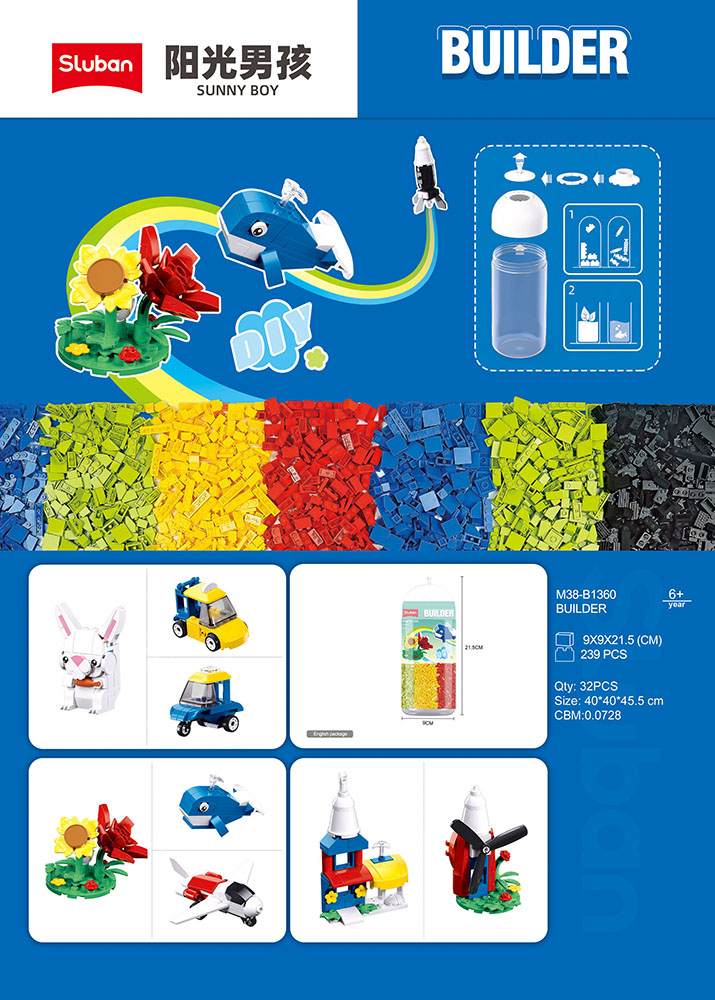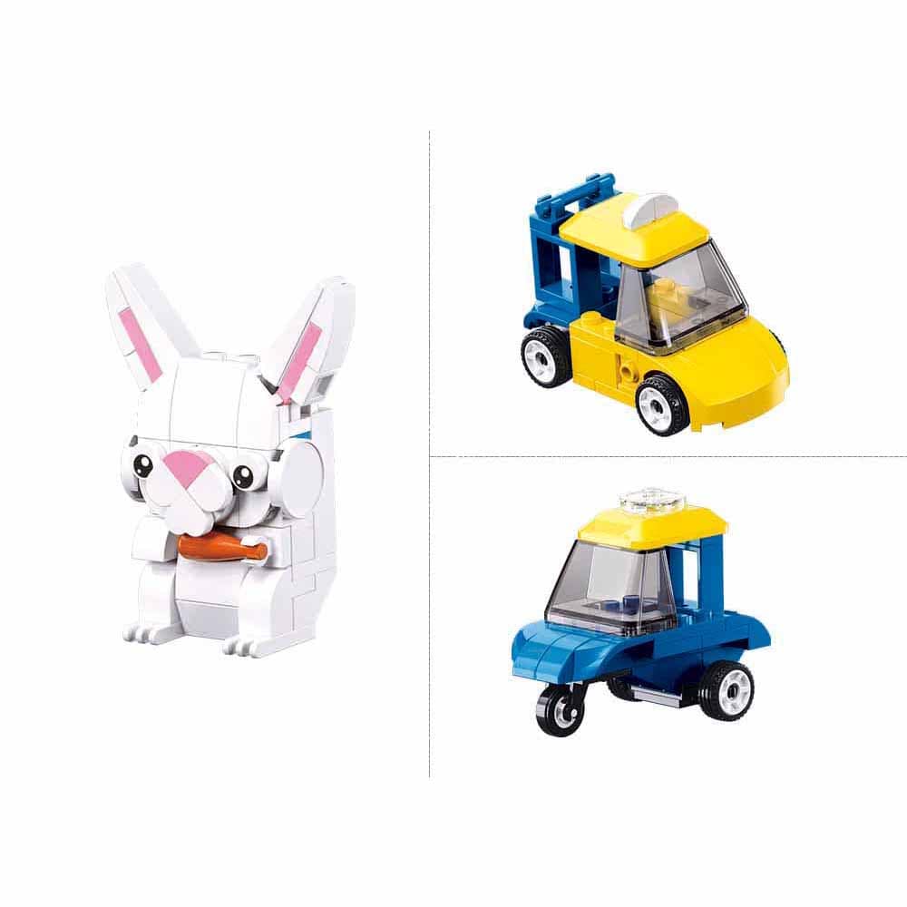 Odkryj radość z klocków Sluban Builder! Ten zestaw 6 w 1 zawiera 239 elementów, z których dzieci mogą zbudować różne modele samolotów, pojazdów, a także królika lub kwiatka. Dzięki kompatybilności z innymi zestawami do budowania, w tym LEGO®, Twój mały budowniczy może rozszerzyć swój świat do nieskończonych rozmiarów. Obserwuj, jak z każdym kolejnym elementem rośnie jego zdolność tworzenia, rozwijania wyobraźni, motoryki małej i sprawności technicznej. Zestawy do budowania Sluban są wykonane z wysokiej jakości, bezpiecznego tworzywa ABS, co zapewnia bezpieczeństwo i długą żywotność. Każdy zestaw zawiera instrukcję montażu i jest zapakowany w praktyczne opakowanie w kształcie pojemnika, który służy do przechowywania elementów. Główne cechy: zawiera 239 elementów konstrukcyjnychinstrukcja montażu kompatybilny z zestawami innych producentów, w tym LEGO®rozwija kreatywność, wyobraźnię i małą motorykęOdpowiednie dla dzieci od 4 lat