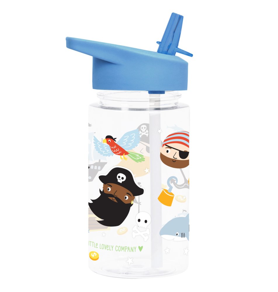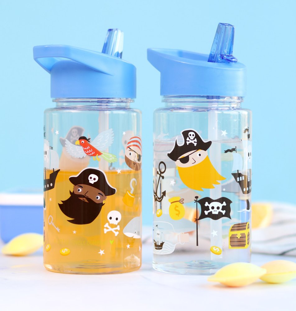 Przezroczysta butelka dla dzieci do picia z pirackim nadrukiem. Butelka jest szczelna i idealnie sprawdzi się na wycieczkach lub w przedszkolu. Możesz skompletować piękny i kompletny zestaw w tym samym stylu – butelkę na wodę, plecak i pudełko na lunch. Butelka nie nadaje się do wrzących lub gorących płynów, kuchenki mikrofalowej ani piekarnika. Konserwacja: Butelkę, nakrętkę i słomkę po użyciu umyj ręcznie i osusz. Nie nadaje się do mycia w zmywarce. Parametry: Wymiary: 7,3 x 16,5 x 7,3 cm Pojemność: 450 ml Materiał: Tritan/polipropylen
