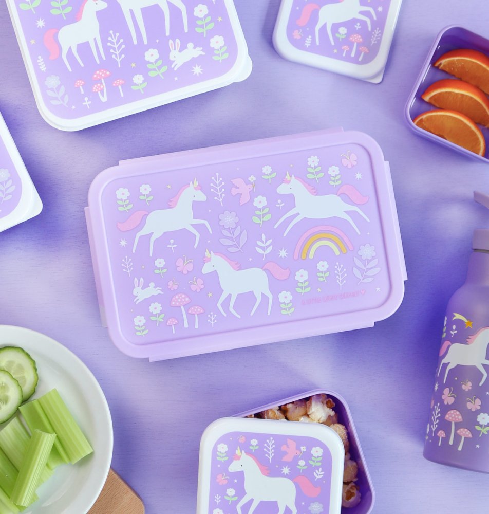 Ten praktyczny pojemnik na śniadanie z motywem jednorożców, kwiatów i tęczy stanie się idealnym towarzyszem dzieci do szkoły lub na wycieczki. Dzięki hermetycznej pokrywce zatrzaskowej i wyjmowanemu pojemnikowi z dwoma przegródkami, każda przekąska będzie przejrzyście uporządkowana przez cały dzień. Idealny na smaczny i różnorodny lunch, który dzieci uwielbiają! Pojemnik na śniadanie: 22 x 7 x 14,5 cm Tacka: 9 x 5,5 x 12,5 cm Pojemność: 1,2 litra Materiał: PP Utrzymanie: nie nadaje się do mycia w zmywarce i do używania w kuchence mikrofalowej