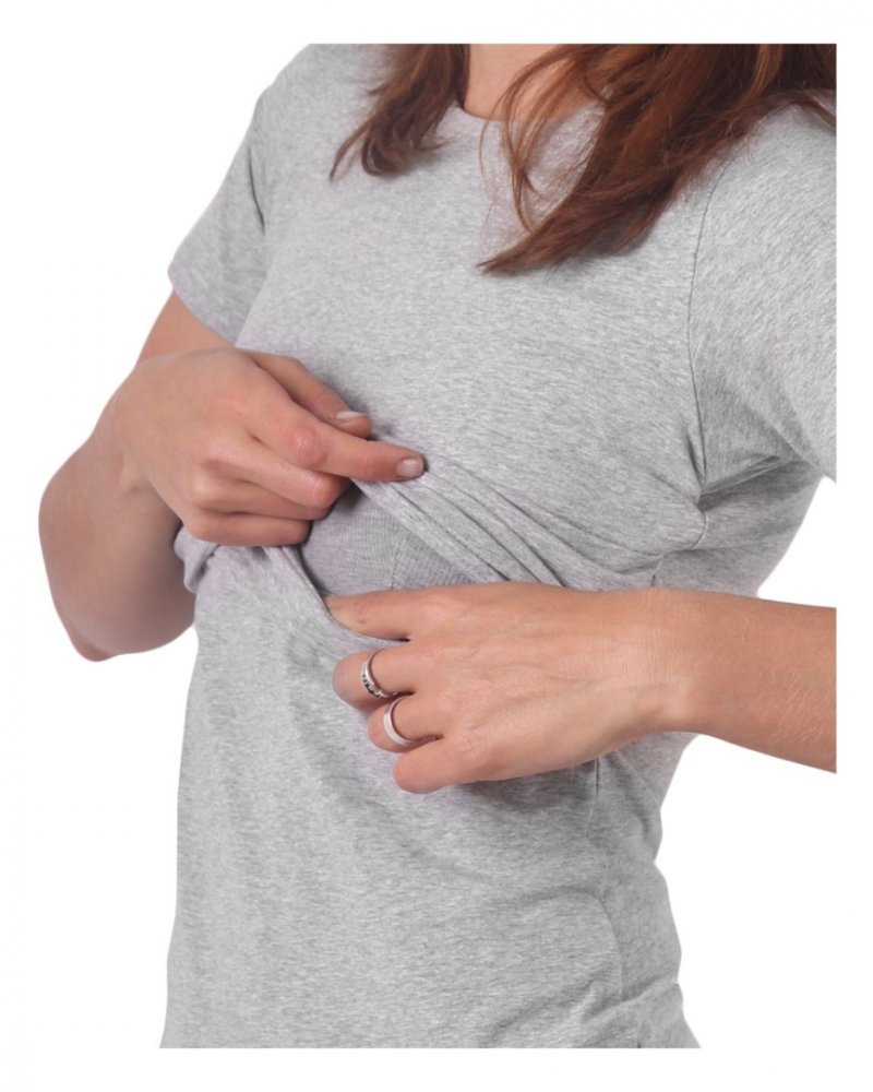 Koszulka do karmienia piersią Lena- najpopularniejszy krój koszulka do karmienia piersią- ten sam krój co koszulki Katherine, jedyną różnicą jest dekolt- dekolt w łódkę- pozwala na całkowicie dyskretne i wygodne karmienie piersią- nie musisz niczego przytrzymywać ani ukrywać, możesz rozpiąć koszulkę dokładnie tyle, ile potrzebujesz- dziesiątki tysięcy sprzedanych egzemplarzy i zadowolonych matek pomogły nam doprowadzić ten krój i to rozwiązanie do pełnej perfekcji- świetny krój również do karmienia piersią w chuście lub nosidełku