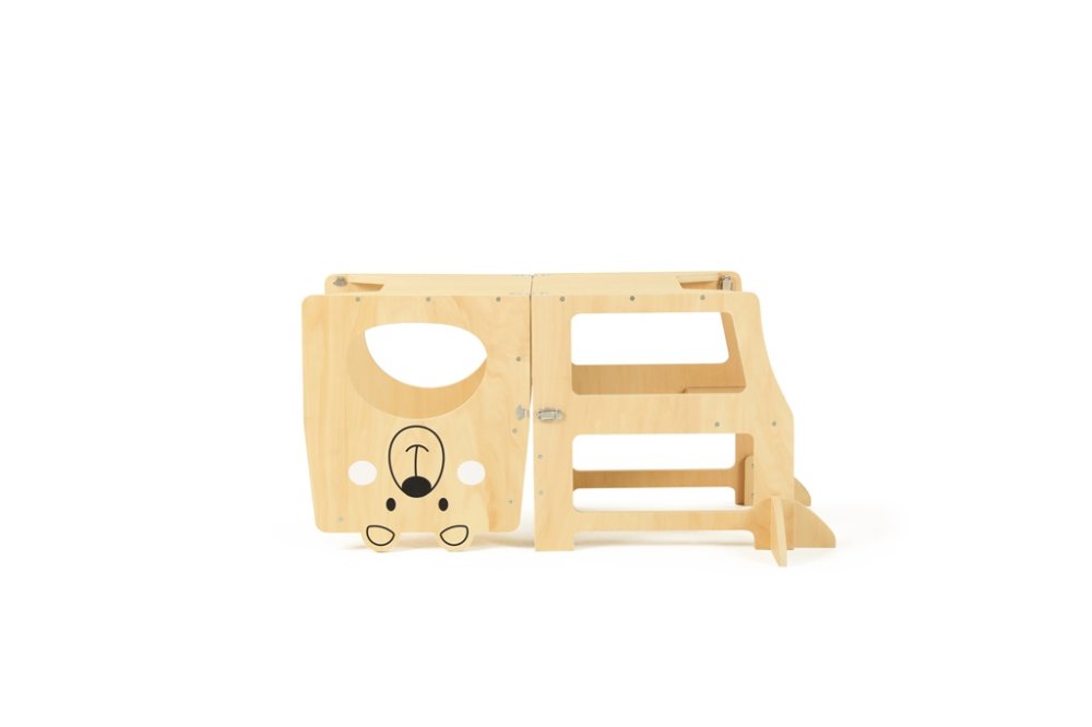 Wieże edukacyjne to wielofunkcyjne stołki, które dajá dzieciom możliwość angażowania się w różne twórcze zajęcia przy blacie kuchennym lub biurku. Pozwala najmłodszym znajdować się na poziomie blatu roboczego, widzieć wszystko, co robisz i tworzyć bezpośrednio z Tobą – dzięki temu masz również stały nadzór. Wieża składa się z powierzchni stojącej, na której stoi dziecko, stopnia, po którym się na nią dostaje, oraz z ogrodzenia wokół. Podczas użytkowania nie należy pozostawiać wieży edukacyjnej w przestrzeni, ale zawsze umieścić wieżę z boku naprzeciwko stopnia do stałej przeszkody (blat kuchenny itp.). Ostrzeżeníe:Sprzedając wieżę edukacyjną, nie ponosimy odpowiedzialności za bezpieczeństwo dziecka. Dziecko na wieży edukacyjnej musi być pod stałym nadzorem osoby dorosłej! Główne cechy: wielofunkcyjny, funkcjonalny mebeldoskonali zdolności motoryczneradosny design z misiem   Znak i certyfikat FSC® (Forest Stewardship Council) gwarantuje, że drewno, z którego wykonano produkt, nie zostało pozyskane nielegalnie i pochodzi z lasów zarządzanych w sposób zrównoważony lub zbliżony do naturalnego, w których przestrzegane są surowe wymogi środowiskowe i społeczne. Znak FSC® na produkcie oznacza, że kupując go, pomagasz chronić lasy i wspierasz zrównoważoną, odpowiedzialną lub zbliżoną do naturalnej gospodarkę leśną, dzięki której nasze lasy są bardziej stabilne, zdrowsze, mają naturalny skład gatunkowy i lepiej radzą sobie z negatywnymi skutkami zmian klimatycznych.