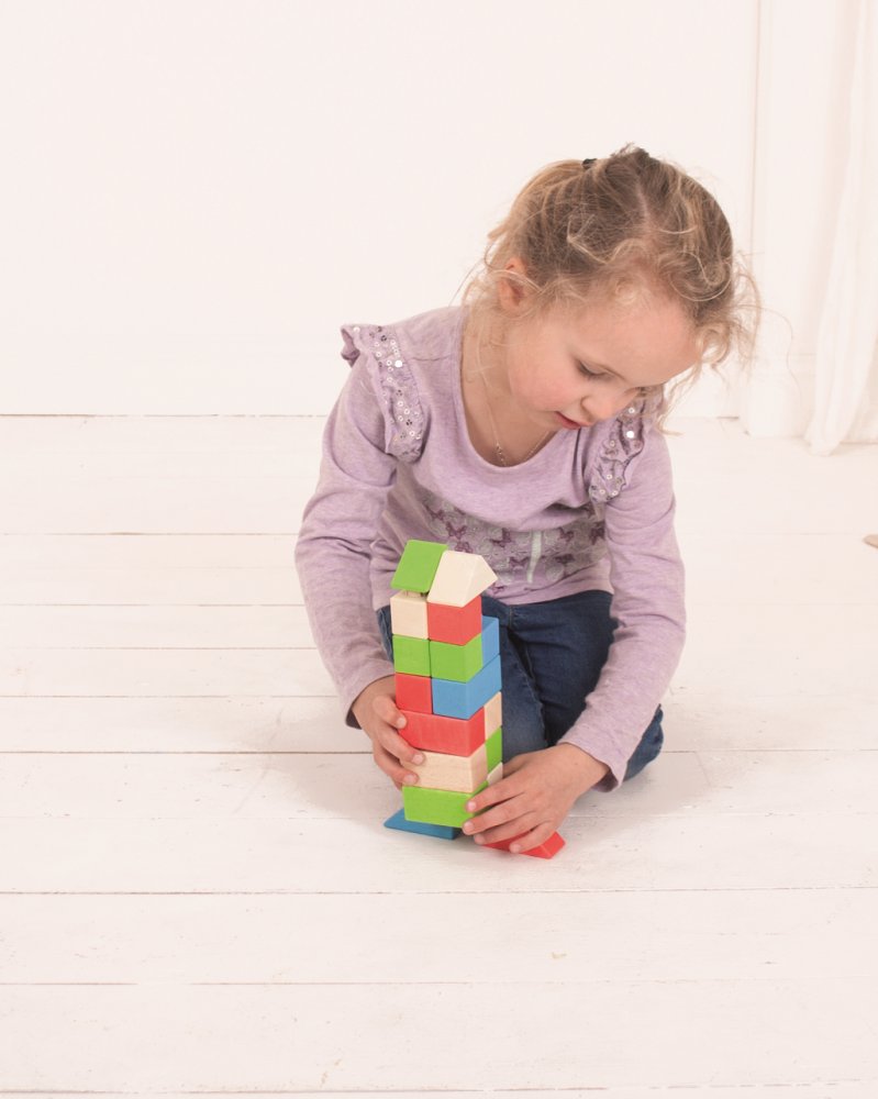 Drewniane łączkostki, unikalny, fantastyczny drewniany zestaw konstrukcyjny stworzony przez połączenie doskonale ukształtowanych drewnianych kostek i plastikowych łączników. Drewniane kostki można dowolnie łączyć ze sobą, tak jak w przypadku klocków LEGO. Średni zestaw zawiera 20 sztuk drewnianych kostek o różnych kształtach i kolorach. Łączkostki mogą być łatwo łączone i rozłączane nawet przez małe dzieci. Twarde i jednocześnie elastyczne plastikowe nakładki nie dają się wyjąć z drewnianej części. Stanowią ich nieodłączną część. Rysunek drewna przyjemnie przebija przez kolor, który jest ekologiczny i ma bardzo przyjemny odcień zgodny z tworzywowymi nakładkami. Główne cechy: odpowiednie dla dzieci już od 1 rokuwielkość kostek jest idealna dla dziecięcych rączekbudowle z kostek są mocne i stabilnerozwijają małą motorykę, kreatywność i oferują niekończące się warianty połączeńwykonano z wysokiej jakości i ekologicznie odpowiedzialnie pozyskanych materiałówspełnia aktualne europejskie normy bezpieczeństwa