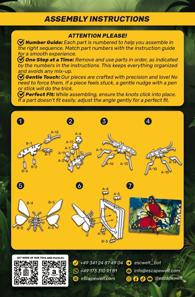 Puzzle 3D Motyl jest dla dzieci zabawne, a zarazem stanowi wyzwanie dla rozwoju ich wyobraźni przestrzennej i logicznego myślenia. Rozwija się jednocześnie także motoryka mała. Te drewniane puzzle 3D zawierają 27 elementów, które muszą być prawidłowo złożone razem, aby utworzyć postać ulubionego motyla. Poszczególne elementy z drewnianej sklejki można łatwo wycisnąć i zgodnie z dołączoną instrukcją krok po kroku składać różne modele – drewniane zabawki. Puzzle nie trzeba kleić klejem, wtedy można je w każdej chwili rozłożyć i złożyć ponownie. Dlatego zalecamy zachowanie instrukcji budowy. Kolorowe drewniane puzzle 3D są opatrzone wysokiej jakości nadrukiem. Te drewniane zabawki są przeznaczone dla dzieci od 8 lat i spełniają wszystkie normy UE. Ostrzeżeníe: Nie nadaje się dla dzieci poniżej 3 lat, ponieważ zawiera małe elementy – ryzyko zadławienia. Materiał opakowaniowy nie jest zabawką. Główne cechy: przyrodnicze drewniane puzzle 3Drozwija motorykę małą i wyobraźnięOdpowiednie dla dzieci od 8 latłatwy poziom trudności