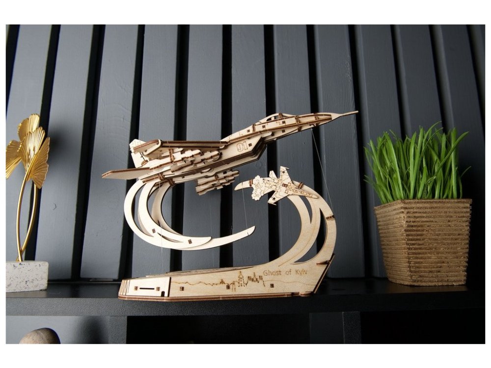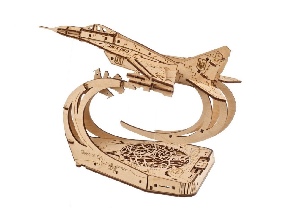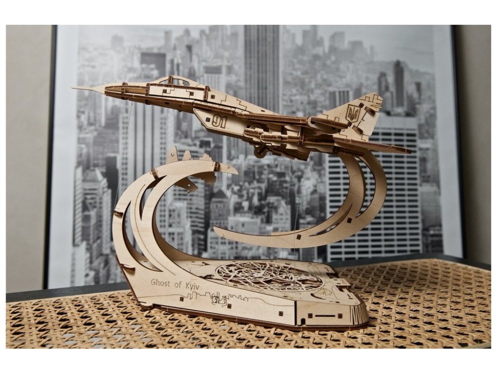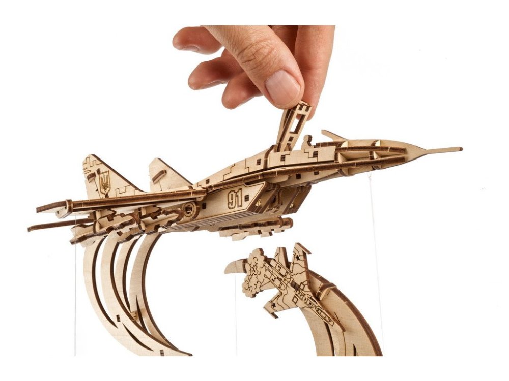 Wyobraź sobie model, który nie tylko przedstawia bohaterstwo, ale sam staje się symbolem odwagi i niezłomności. Ugears wprowadza na rynek model myśliwca MiG-29, który w skali 1:72 dokładnie odwzorowuje legendarny samolot "The Ghost of Kyiv". Ten model nie tylko podkreśla doskonałość techniczną, ale także historię nieustraszonego obrońcy nieba nad Kijowem. Przypomnij sobie historię, która wstrząsnęła światem, dzięki precyzyjnie wyciętym puzzlom 3D. Każdy element tego modelu został zaprojektowany z dbałością o szczegóły i autentyczność. Ruchome lotki, klapy, chowane podwozie, a nawet odłączane pociski. Ale to, co naprawdę oddaje ducha tego modelu, to jego zdolność do „unoszenia się” nad stylizowaną mapą Kijowa za pomocą tensegrity, co jest rewolucyjną zasadą, która pozwala modelowi defiacyjnie unosić się w powietrzu. To kawałek inżynieryjnej sztuki, który przenosi historię The Ghost of Kyiv do Twojego domu lub biura. Z 181 częściami i szacowanym czasem montażu ok. 5 godzin, ten model oferuje nie tylko zabawę i edukację, ale staje się także kreatywnym wyzwaniem dla osób indywidualnych i rodzin. Wyobraź sobie, jak składasz każdy element, odkrywasz historie odwagi i wspominasz o niezłomności ukraińskiego ducha. Nie potrzeba żadnego kleju ani narzędzi, tylko Twoja zręczność i chęć tworzenia. Ten model to nie tylko wspaniały prezent dla każdego entuzjasty modelarstwa lotniczego i historii wojskowości, ale także oryginalny eksponat, który przyciągnie uwagę w Twoim domu lub biurze. Niech zainspiruje Cię historia, która będzie żyć z Tobą i Twoją rodziną przez pokolenia. Główne cechy: 181 precyzyjnie wyciętych elementówśredni poziom trudności składaniadrobne detale mechanicznezaprojektowano i wyprodukowano na Ukrainie