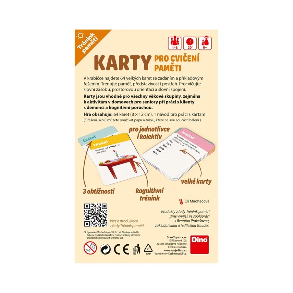 Odkryj magię wspólnie spędzonych chwil, podczas których będziesz się bawić i rozwijać swoje umiejętności. Gra jest odpowiednia dla wszystkich grup wiekowych, od dzieci po seniorów. 64 dużych kart z oryginalnymi zadaniami i propozycjami rozwiązań zostało zaprojektowanych do aktywnego treningu pamięci, wyobraźni, słownictwa, spostrzegawczości i orientacji przestrzennej. Są idealnym pomocnikiem dla opiekunów w domach seniora, w pracy z osobami cierpiącymi na demencję lub osłabienie funkcji poznawczych, ale także dla rodzin, które chcą sensownie spędzać czas ze swoimi dziećmi, rodzicami i dziadkami. Każda karta zawiera proste, pomysłowe aktywności, które dają wskazówki, wspierają komunikację i inspirują do wspólnych działań. Regularne ćwiczenie mózgu pomaga w lepszej orientacji w życiu codziennym, utrzymuje kondycję psychiczną i przyczynia się do dobrego nastroju. Zawartość opakowania: 64 karty instrukcja do gry Główne cechy: trenuje pamięć, wyobraźnię, spostrzegawczość, słownictwo i orientację przestrzennąodpowiednie dla seniorów i osób z demencją oraz zaburzeniami poznawczymiodpowiednie dla dzieci od 6 latteksty na kartach w języku czeskimwyprodukowano w ČR