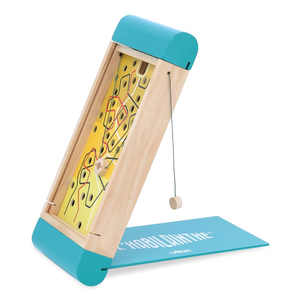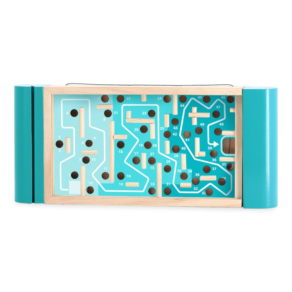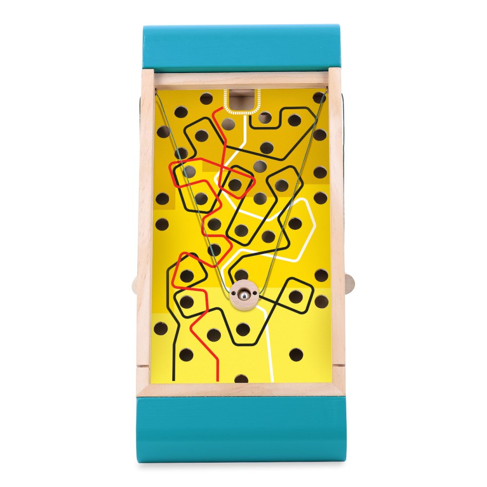 Poprowadź niesforną kulkę ścieżkami pełnymi pułapek w postaci zapadlisk. Labirynt zapewnia rozrywkę, która dokładnie sprawdzi Twoją zręczność i cierpliwość, i to od razu w dwóch wariantach! Z jednej strony kontroluj ruch kulki za pomocą drążków i wybierz jedną z trzech kolorowych tras o różnym stopniu trudności. Po drugiej stronie wpływaj na kierunek kulki samym nachyleniem labiryntu. Zabawka jest bardzo kompaktowa, wyposażona w praktyczną pokrywę, którą dzięki przemyślanej konstrukcji można wykorzystać jako podporę podczas zabawy. Wykonana jest ze starannie obrobionego i atrakcyjnie lakierowanego drewna. Główne cechy: labirynt i 3 kulkiunikalny design i wykonaniepraktyczne i kompaktowe opakowanie