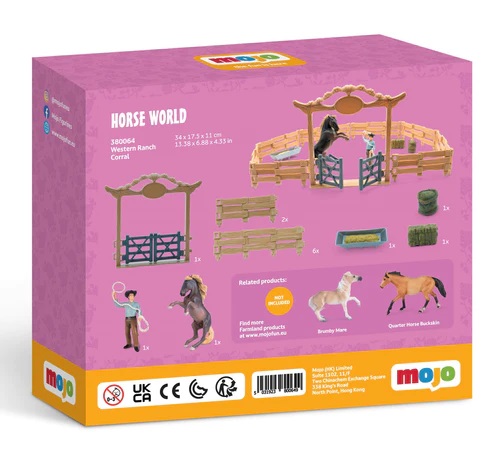 Przedstawiamy Państwu Mojo Westernowy Ranch Corral z koniem i kowbojem – zabawkę, która przeniesie Twoje dzieci prosto do serca bezkresnych równin i zawrotnych przygód. Przygotuj się na podróż, która poszerzy horyzonty wyobraźni Twoich dzieci i przyniesie do domu kawałek ikonicznego zachodu. Wykonane z miłością i dbałością o szczegóły przez doświadczonych rzemieślników w Wielkiej Brytanii. Każda figurka, od majestatycznego konia po dzielnego kowboja, jest starannie modelowana tak, aby odzwierciedlała ich rzeczywiste odpowiedniki z zachwycającą dokładnością. Ich pierwszorzędna poli(chlorek winylu) konstrukcja gwarantuje, że Twoja przygoda potrwa długo i bezpiecznie. Mojo Westernowy Ranch Corral to okazja dla dzieci, aby nauczyć się czegoś nowego o zwierzętach, farmie i historii Dzikiego Zachodu. Wyobraź sobie, jak ten zestaw pomaga Twoim dzieciom rozwijać ich kreatywność i zdolności poznawcze. Główne cechy: wierne detale i kolorystykawytrzymała konstrukcjazaprojektowano we współpracy ze społecznością kolekcjonerówczęść Mojo Farm & Horses Collection