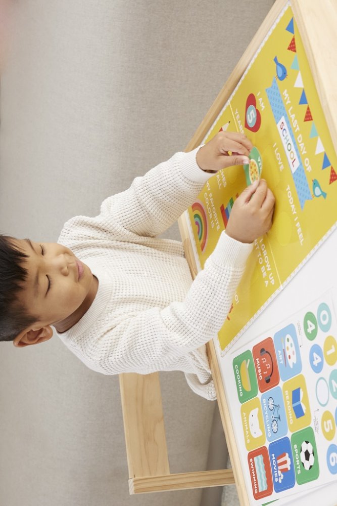 Spraw, aby ten wielki dzień Twoich dzieci był naprawdę niezapomniany! Samoprzylepne naklejki wielokrotnego użytku to świetna pomoc nie tylko dla dzieci chodzących do klas 1-3. Mogą wybierać spośród 97 naklejek, które następnie nakleją na dwustronną kartkę. Kartka ma np. rubryki na wiek, wzrost, cel, nastrój lub ulubiony kolor. Jaki był pierwszy dzień w nowym roku szkolnym? A co dopiero ostatni? Główne cechy: kompaktowy i lekki, idealny dla małych uczniów od 1 do 3 klasy (odpowiedni również dla przedszkolaków)zawiera dwustronną kartkę z 6 stronami papierowych naklejek (łącznie 97)wykonane z papieru FSC Znak i certyfikat FSC® (Forest Stewardship Council) gwarantuje, że drewno, z którego wykonano produkt, nie zostało pozyskane nielegalnie i pochodzi z lasów zarządzanych w sposób zrównoważony lub zbliżony do naturalnego, w których przestrzegane są surowe wymogi środowiskowe i społeczne. Znak FSC® na produkcie oznacza, że kupując go, pomagasz chronić lasy i wspierasz zrównoważoną, odpowiedzialną lub zbliżoną do naturalnej gospodarkę leśną, dzięki której nasze lasy są bardziej stabilne, zdrowsze, mają naturalny skład gatunkowy i lepiej radzą sobie z negatywnymi skutkami zmian klimatycznych.