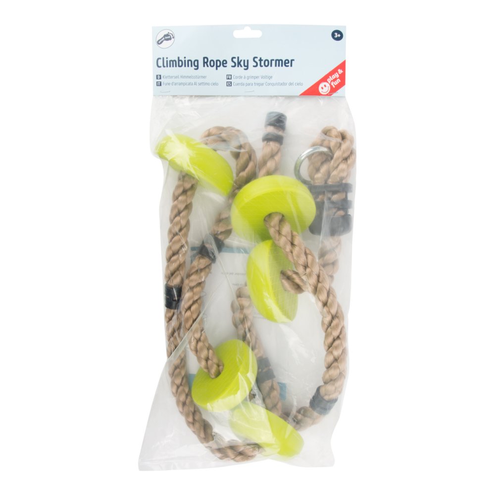 Kto wspią się na sam szczyt? Lina wspinaczkowa przyda się w każdym ogrodzie! Dzięki niej Twoje małe małpki mogą ćwiczyć i mierzyć swoją siłę oraz zwinność. Lina nylonowa jest bardzo elastyczna, dzięki czemu można ją łatwo schować. Na końcu znajduje się metalowy pierścień do zawieszenia. Stopnie z bezpiecznego tworzywa sztucznego w atrakcyjnym kolorze pomagają dzieciom rozpocząć wspinaczkę. Dzięki zastosowanym materiałom pomoc może zaoferować wysoką odporność i żywotność. Główne cechy:długość 200 cm, 5 stopninośność 100 kgwytrzymała konstrukcja