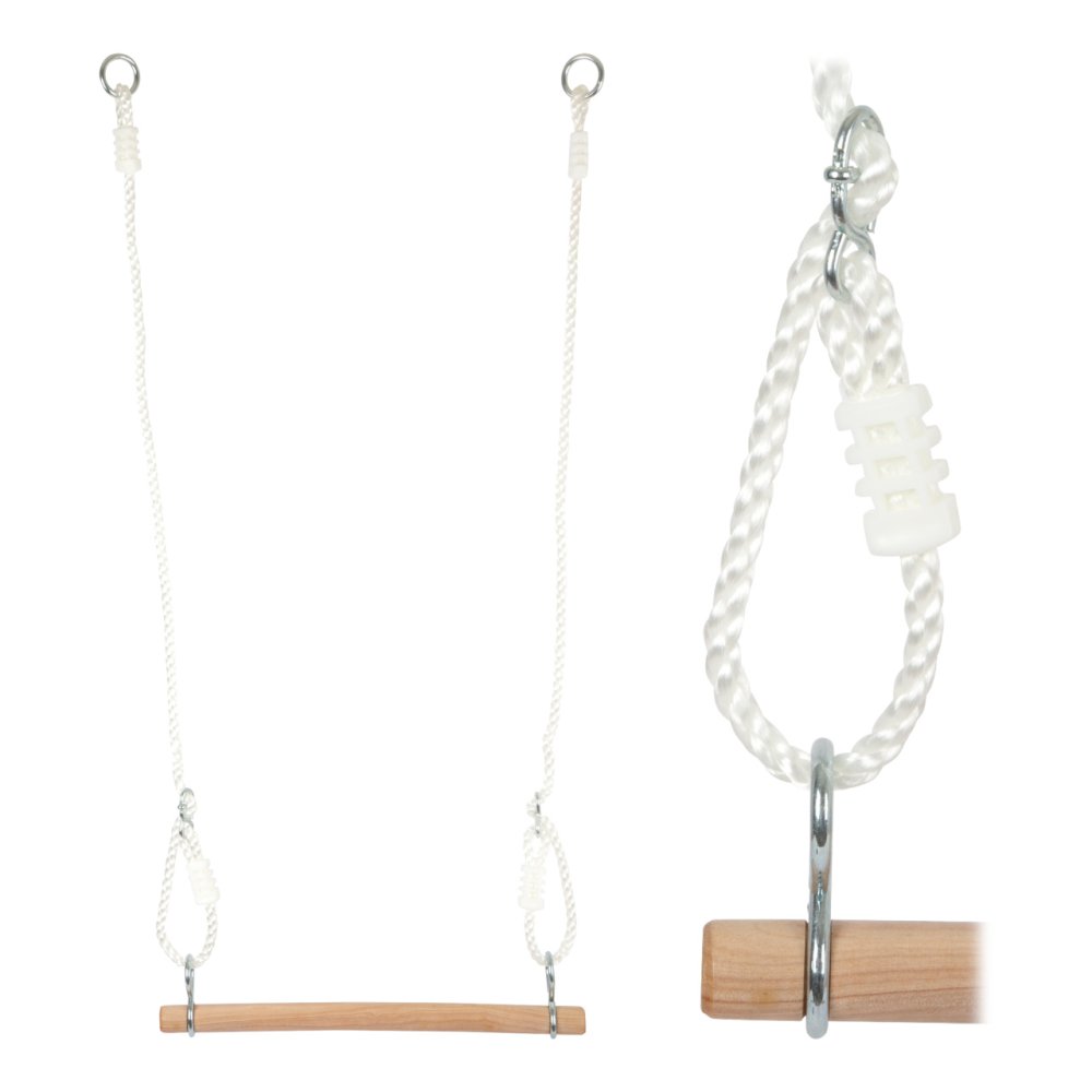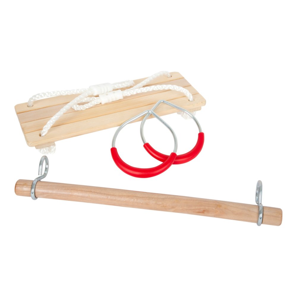 Zabawa z huśtawkami x3! Dzięki temu zestawowi huśtawek, który składa się z huśtawki pojedynczej, wiszącego drążka i metalowych kółek gimnastycznych z plastikowymi uchwytami, dzieci zapomną, co to znaczy nuda. W zestawie dwa komplety lin, które są odporne na działanie czynników atmosferycznych i można je regulować dzięki lince ósemkowej. Dzięki temu dla każdej huśtawki można ustawić optymalną wysokość! Dzięki dwóm zestawom lin można używać dwóch huśtawek jednocześnie. Proste zawieszenie. Praktyczna i wielofunkcyjna zabawka do domu i ogrodu. Główne cechy 4 regulowane liny3 rodzaje huśtawekKółka gimnastyczne mają plastikowe uchwyty
