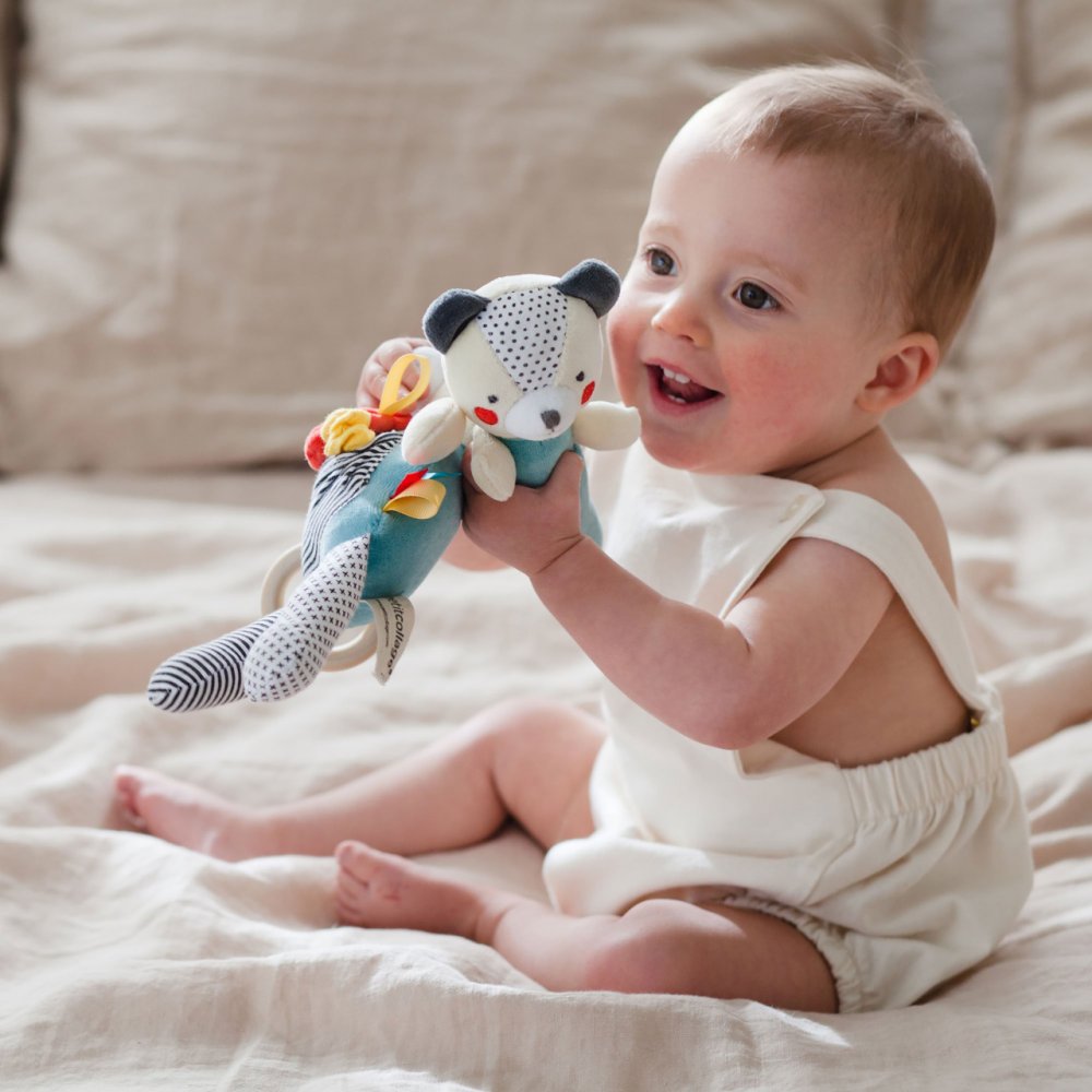 Ten mały miś jest idealną zabawką organiczną dla niemowląt. Zabawka jest wykonana ręcznie, służy jako gryzak lub jako miś do przytulania. Zabawka jest przeznaczona dla noworodków. Główne cechy: Bawi delikatnymi aktywnościami rozwojowymiWykonany z najwyższej jakości certyfikowanej bawełny organicznej GOTS i nietoksycznych barwnikówWyprodukowano z materiałów pochodzących z recyklingu