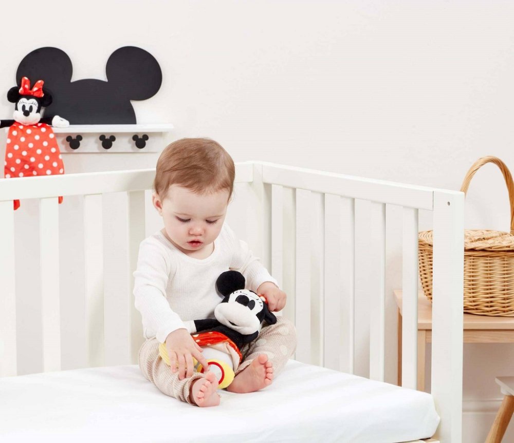 Baw się z Minnie! Z zabawną, siedzącą pluszową zabawką Disney Minnie Mouse Activity czeka Cię mnóstwo zabawy i gier. Pobudź wyobraźnię swojego malucha dzięki tej super miękkiej zabawce Activity o wysokości 18 cm. Ta super pluszowa zabawka myszka Minnie, ukochana Mickey Mouse, to figurka uwielbiana przez pokolenia od 1928 roku. Myszka Minnie ma charakterystyczne cechy i czerwoną kokardę w białe kropki. Na prawym bucie ma teksturę sznurka, a na lewym okrągłe lusterko. Ta zabawka również pomaga w rozwoju umiejętności motorycznych. Minnie to idealna pluszowa przyjaciółka, z którą możesz cieszyć się opowiadaniem historii lub po prostu przytulić się przed snem. Główne cechy: odpowiednie od urodzeniaIdealny jako prezent dla noworodkawspomaga rozwój zmysłówwspomaga wczesne umiejętności motorycznepluszowa zabawka aktywizująca