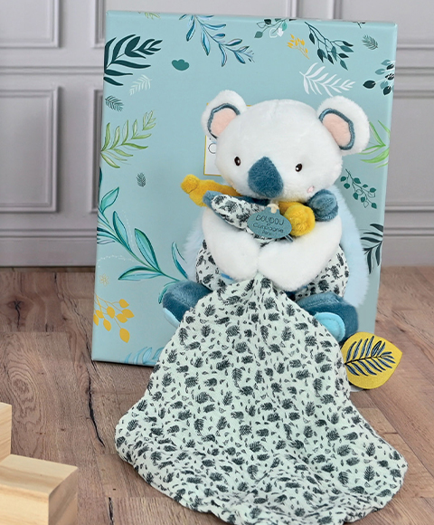 Pluszowa koala Yoca towarzyszy dziecku od urodzenia, aby zapewnić mu miękkość, wygodę i przytulenie. To bardzo ładny prezent na Boże Narodzenie lub z okazji narodzin niemowlęcia. Jest niezwykle miękka i przyjemna w dotyku. Urocza koala z uspokajaczem umieszczona jest w pięknym pudełku prezentowym z grafiką ewokującą nowoczesność i luksus. Konserwacja: Prać w kąpieli w temperaturze 30°. Naturalne lub niskotemperaturowe suszenie. Główne cechy: miękki plusz, materiał premiumzgodny z europejskimi normami CEpiękne pudełko prezentoweodpowiednie od urodzenia