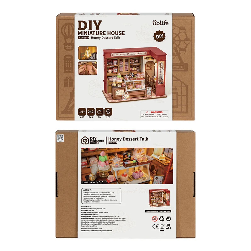 Czas na coś słodkiego! Wybierz spośród wyśmienitych deserów z oferty przytulnej francuskiej cukierni, które są wystawione na drewnianych półkach lub w szklanej witrynie. Oferta jest szeroka. Masz ochotę na makaroniki, maślane ciasteczka, babeczki, czekoladę lub donuty? A może wolisz napić się herbaty lub kawy? W pojemniku przygotowane są nawet gumowe cukierki dla małych łasuchów! Drzwiczki szafek są otwierane, dzięki czemu możesz eksponować towary według własnego uznania. Poczuj atmosferę spokoju i relaksu, którą potęguje przyjemne oświetlenie LED.  Układanka 3D to świetny sposób na kreatywną i edukacyjną zabawę, a jednocześnie stworzenie wspaniałego modelu, który może stać się nietradycyjnym prezentem lub ozdobą wnętrza. Układanie układanki 3D wspiera rozwój motoryki małej, myślenia przestrzennego i cierpliwości. To możliwość połączenia zabawy z edukacją. Wszystkie precyzyjnie wycięte elementy łatwo do siebie pasują bez użycia kleju i narzędzi, dzięki czemu efekt jest stabilny i trwały. Układanka jest dostarczana w stanie rozłożonym, zapakowana w pudełko ze szczegółową instrukcją montażu. Do zasilania służą 2x AAA /LR03/AM4 1,5 V (brak w zestawie). Główne cechy:  242 elementyczas składania 4 godz.średni poziom trudności składaniaoświetlenie LEDmontaż bez użycia kleju i narzędziwyjątkowy wyglądodpowiednie dla dzieci i dorosłychrozwija umiejętności logiczne i motorycznewspiera cierpliwość dzieciidealny jako prezent lub wyjątkowa dekoracjazasilanie za pomocą 2x AAA /LR03/AM4 1,5 V (brak w zestawie)