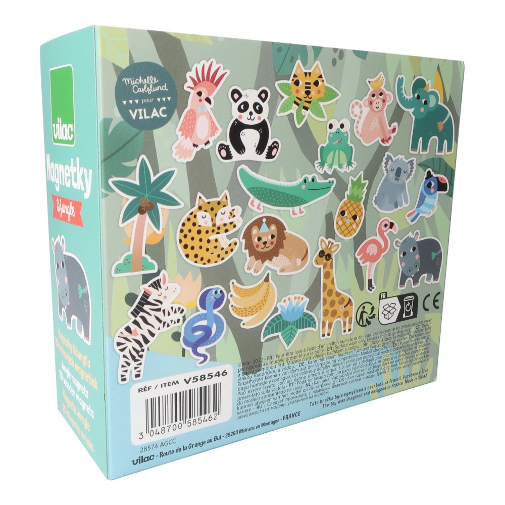 Zestaw drewnianych magnesów z niepowtarzalnymi ilustracjami Michelle Carlslund. Wyrusz w dzicz w towarzystwie najsłodszych zwierzątek! Charakterystyczna kolorystyka magnesów pomoże uczynić Twój dom przytulnym, urozmaici tablicę magnetyczną lub lodówkę. Wysokiej jakość nadruk i trwała konstrukcja zapewniają długotrwałą zabawę. Główne cechy: 20 szt. różnych magnesówdesign Michelle Carlslundelement dekoracyjny odpowiedni do pokoju i na lodówkę Podróżuj z nami w naiwnym i eleganckim świecie duńskiej ilustratorki Michelle Carlslund, świecie delikatnych barw, który jest pełen uroczych misiów i przyjaznych ptaszków. W 2010 roku, kiedy Michelle jeszcze studiowała grafikę, wydrukowała w domu swoje ilustracje i spróbowała je sprzedać na rynku designu, gdzie spotkały się z dużym sukcesem! Kilka sklepików chciało zacząć sprzedawać jej dzieła, więc wpadła na pomysł, że fajnie byłoby zacząć działać na własną rękę. Michelle szybko stała się uznaną niezależną ilustratorką. Dziś jej ekologiczne prace graficzne można kupić na całym świecie w butikach z designem, sklepach papierniczych i sklepach dla dzieci. Michelle inspiruje się wszystkim wokół niej. Jej twórczość jest delikatna i poetycka, stylizowana i dziecięca, idealnie współgra z zabawkami firmy Vilac. „Jestem miłośniczką frytek, optymistką czasową i twórczynią ekologicznych plakatów oraz ilustratorką freelancerką z siedzibą w Kopenhadze w Danii” – tak powiedziałaby ilustratorka Michelle Carlslund, gdyby miała opisać się jednym zdaniem.