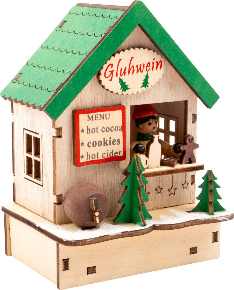 Te trzy małe drewniane domki świąteczne zachwycą klientów dopracowanymi detalami. Pośrednie oświetlenie bateryjne w stoisku z przyprawami, stoisku z piernikami i inne… Podobnie jak błyszczący śnieg, tworzą atmosferę świątecznego otoczenia. Baterie nie są częścią zestawu.  Główne cechy: idealna dekoracja na sezon zimowytworzy magiczną adwentową atmosferędopracowane detale