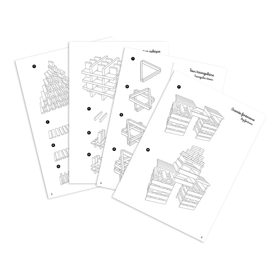 Zestaw wykonany z naturalnego, litego drewna. Zawiera 100 małych płytek, które pomagają dzieciom rozwijać wyobraźnię. Opakowanie zawiera również instrukcje budowania. Główne cechy: wspiera wyobraźnięzawiera 100 elementówwyprodukowano we Francji