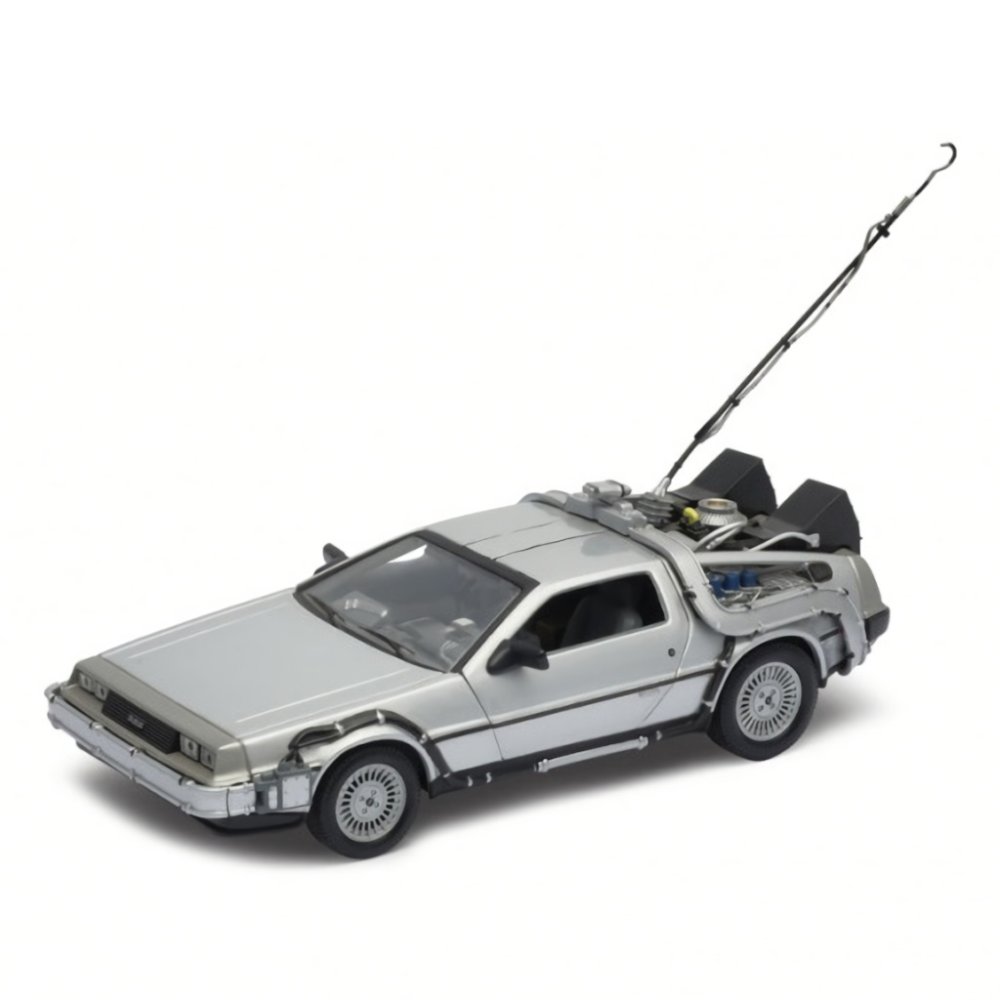 Szczegółowy model kultowego pojazdu z filmu Powrót do przyszłości wykonany z metalu i plastiku, posiada otwierane drzwi skrzydłowe i odłączany pantograf. Wierność tych modeli zwiększa zastosowanie lakierów, które mają identyczny odcień koloru jak prawdziwe samochody. Skala 1:24 to wykonanie na granicy między modelem kolekcjonerskim a zabawką, autka wymagają ostrożniejszego obchodzenia się. Dostarczane w różnokolorowym papierowym pudełku z plastikowym okienkiem. Główne cechy:ikona filmów Powrót do przyszłościmetalowa karoseriaotwierane drzwi