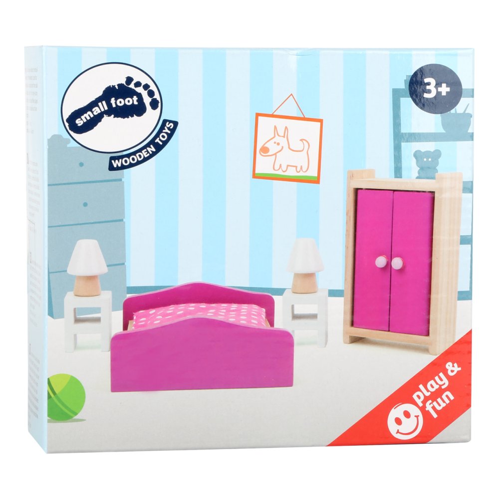 Ten 6-częściowy zestaw do sypialni jest przeznaczony dla lalek do wyginania o wysokości do 12 cm. Wykonany jest z litego drewna, co zapewnia długą żywotność. Główne cechy: podczas zabawy ten zestaw pobudza wyobraźnię i ćwiczy motorykę małą