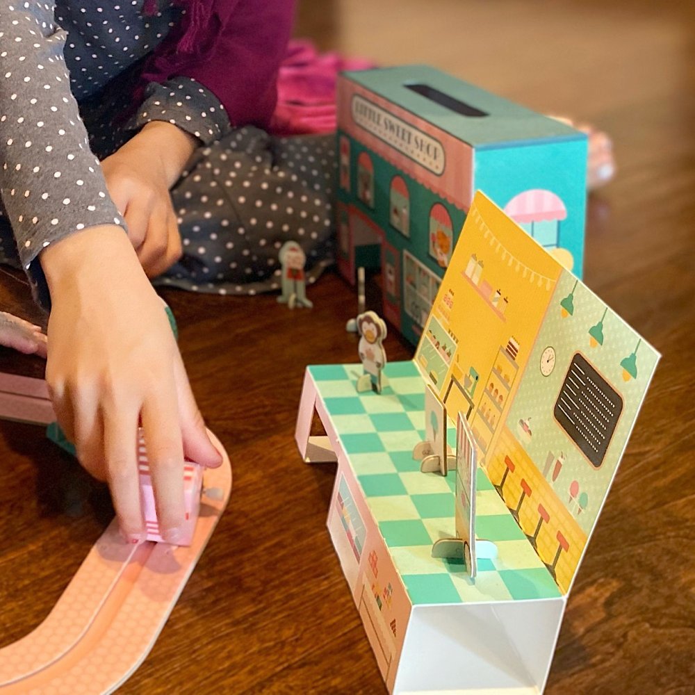 Czas na słodką nagrodę! Nakręć samochód z lodami i patrz, jak jedzie obok cukierni do celu! Idealna zabawka na długie godziny pomysłowej zabawy. Pudełko można łatwo przenosić dzięki uchwytowi z liny. Główne cechy: dwustronna cukierniadrewniany nakręcany samochód z lodami8 szt. toru10 szt. dodatkowych elementów do zabawyłatwy w montażu torpakowane bez plastiku z myślą o środowiskuodpowiednie do domu i w podróżydla dzieci od 3 lat Znak i certyfikat FSC® (Forest Stewardship Council) gwarantuje, że drewno, z którego wyprodukowano produkt, nie zostało pozyskane nielegalnie i pochodzi z lasów gospodarowanych w sposób zrównoważony lub zbliżony do naturalnego, w którym przestrzegane są surowe wymogi środowiskowe i społeczne. Znak FSC® na produkcie oznacza, że swoim zakupem pomagasz chronić lasy i wspierasz zrównoważoną, odpowiedzialną lub zbliżoną do naturalnej gospodarkę, dzięki której nasze lasy są bardziej stabilne, zdrowsze, mają naturalny skład gatunkowy i lepiej opierają się negatywnym skutkom zmian klimatycznych.
