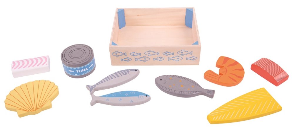 Ta drewniana skrzynka na ryby jest pełna świeżych i zdrowych ryb od handlarzy rybami. Zawiera wybór ryb, takich jak łosoś, tuńczyk w puszce, krewetki i inne. Świetny dodatek do drewnianej kuchni do zabawy dla wszystkich początkujących kucharzy. Drewniane jedzenie Bigjigs Toys jest idealne, aby pomóc Twojemu dziecku dowiedzieć się o znaczeniu zdrowej i zbilansowanej diety, skąd pochodzi nasze jedzenie i jak je przygotowujemy. Po skończonej zabawie drewniane jedzenie można schować z powrotem do praktycznego pudełka. Główne cechy: rozwija motorykę dzieckapraktyczne pudełko do przechowywania zabawekwykonane z wysokiej jakości, odpowiedzialnie pozyskiwanych materiałówodpowiada aktualnym europejskim normom bezpieczeństwa