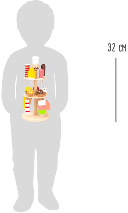 Mniam… lody! Ten starannie zaprojektowany stojak na lody z litego drewna spełnia wszystkie lodowe życzenia. Tutaj dzieci mogą wybrać swoje ulubione lody. Czy to lody na patyku, czy lody w waflu – to nie jest łatwa decyzja! Różne smaki lodów można łatwo umieścić w stojaku na lody, co czyni go prawdziwą atrakcją na ladzie sklepowej, w kuchni dziecięcej lub w kawiarni. Główne cechy: Wspiera umiejętności społeczne i motorykę małą dzieci