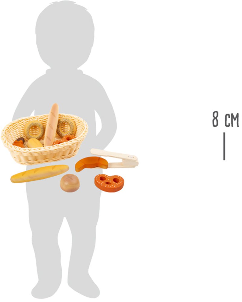 Croissanty, bajgle, precle, żytnie i pszenne rogaliki, bułka i dalamanek to niezbędny asortyment Twojego małego sklepiku. Drewniane pieczywo możesz zaoferować jako dodatek podczas gotowania w dziecięcej kuchni. Główne cechy: 10 sztuk pieczywa, pleciony koszyk i szczypcewspiera odgrywanie ról i umiejętności motoryczne
