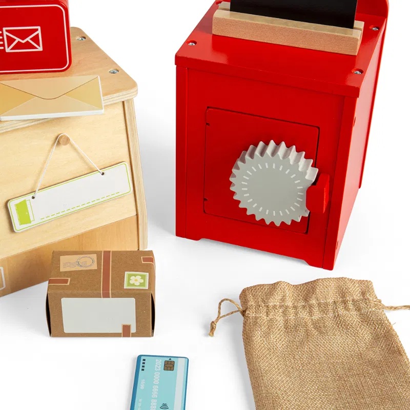Co się robi na poczcie? Mali listonosze mogą przeżyć pracowity dzień, sortując i dostarczając pocztę za pomocą własnego zestawu pocztowego! Zestaw zawiera wszystko, czego potrzebuje prawdziwy listonosz do swojej pracy: skrzynkę pocztową, kasę fiskalną, wagę, worek na paczki, paczki, listy, pocztówki, pieczątkę i inne. Gry fabularne doskonale wpływają na dziecięcą wyobraźnię, kreatywność, umiejętności społeczne i rozwój językowy. Role pracowników poczty lub klientów również poprawią ich umiejętności komunikacyjne podczas ćwiczenia mówienia, słuchania, czytania i pisania. Zestaw jest wykonany z najwyższej jakości i zrównoważonego drewna z certyfikatem FSC® i pomalowany nietoksycznymi farbami i lakierami. Spełnia aktualne europejskie normy bezpieczeństwa. Zawartość opakowania: skrzynka pocztowa z tablicą, kasa fiskalna, waga, worek, paczki, listy i pocztówki, karta kredytowa i terminal, pieczątka, rachunki Główne cechy: 19 elementówrozwija wyobraźnię, kreatywność, umiejętności społecznewspiera odgrywanie rólwykonane z drewna z certyfikatem FSC®odpowiednie od 3 lat Znak i certyfikat FSC® (Forest Stewardship Council) gwarantuje, że drewno, z którego wykonano produkt, nie zostało pozyskane nielegalnie i pochodzi z lasów zarządzanych w sposób zrównoważony lub zbliżony do naturalnego, w których przestrzegane są surowe wymogi środowiskowe i społeczne. Znak FSC® na produkcie oznacza, że kupując go, pomagasz chronić lasy i wspierasz zrównoważoną, odpowiedzialną lub zbliżoną do naturalnej gospodarkę leśną, dzięki której nasze lasy są bardziej stabilne, zdrowsze, mają naturalny skład gatunkowy i lepiej radzą sobie z negatywnymi skutkami zmian klimatycznych.