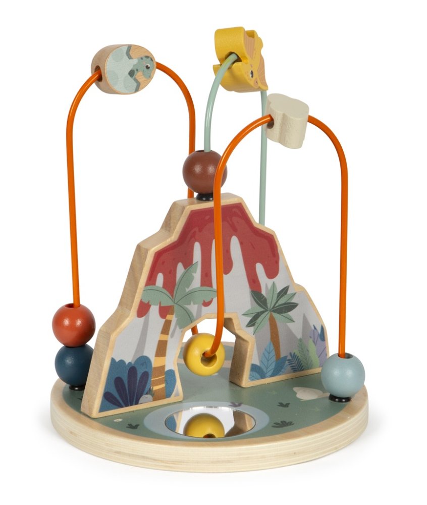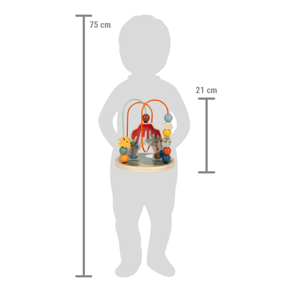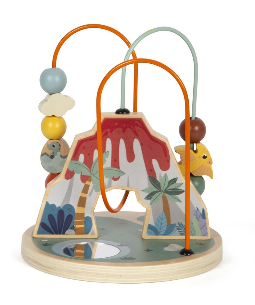 Ten labirynt z koralików jest nie tylko zabawny, ale także korzystny dla rozwoju motoryki małej i koordynacji wzrokowo-ruchowej. Wykonany jest z solidnego drewna i inspirowany dinozaurami oraz środowiskiem, w którym żyły. Labirynt zawiera 2 pętle motoryczne, na jednej znajdują się 4, a na drugiej 6 koralików o różnych kolorach, kształtach i rozmiarach. Na podstawie w kształcie koła umieszczone jest okrągłe lusterko, w którym wszystko widać z innej perspektywy. Wizualnym punktem kulminacyjnym jest wulkan wyrzucający lawę, który pełni funkcję centralnego punktu dla labiryntu z koralików.Tematem zabawek z serii "Dino" są fascynujące prehistoryczne stworzenia, które przyciągają uwagę ludzi w każdym wieku. Te drewniane zabawki wspierają rozwój zdolności motorycznych, inspirują dziecięcą kreatywność i wyobraźnię oraz zachęcają dzieci do poznawania przyrody i historii tych pradawnych gigantów. Główne cechy: wysokiej jakości kolorowe wykończenie z wbudowanym lusterkiemrozwija koordynację ręka-okotrenuje małą motorykę Znak i certyfikat FSC® (Forest Stewardship Council) gwarantuje, że drewno, z którego wykonano produkt, nie zostało pozyskane nielegalnie i pochodzi z lasów zarządzanych w sposób zrównoważony lub zbliżony do naturalnego, w których przestrzegane są surowe wymogi środowiskowe i społeczne. Znak FSC® na produkcie oznacza, że kupując go, pomagasz chronić lasy i wspierasz zrównoważoną, odpowiedzialną lub zbliżoną do naturalnej gospodarkę leśną, dzięki której nasze lasy są bardziej stabilne, zdrowsze, mają naturalny skład gatunkowy i lepiej radzą sobie z negatywnymi skutkami zmian klimatycznych.