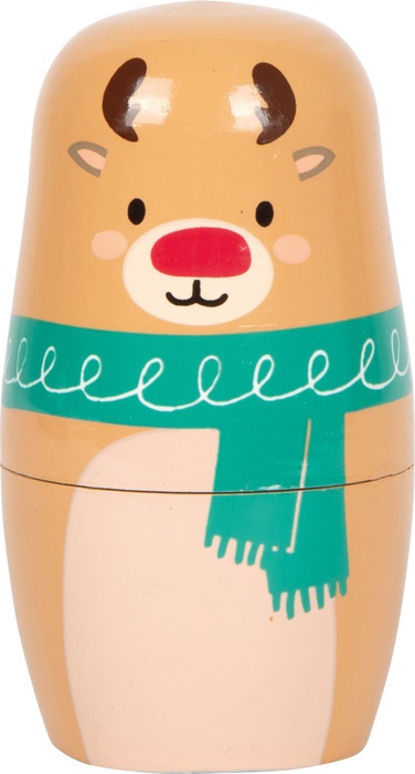 Świąteczne matrioszki przynoszą radość dzieciom i dorosłym. Starannie malowane drewniane figurki z motywami Świętego Mikołaja, renifera, pingwina i bałwana. Mniejsze figurki są stopniowo wkładane do większych, co wspiera zabawę, odkrywanie i rozwój motoryki małej. Każda matrioszka emanuje magią Świąt Bożego Narodzenia i stanowi piękną dekorację oraz zabawkę w jednym. Świetna aktywność rozwijająca koordynację wzrokowo-ruchową i koncentrację. Główne cechy: łączy zabawę i dekorację idealne do pokoju dziecięcego i dekoracji świątecznychRozwija koordynację wzrokowo-ruchową i umiejętności motoryczneodpowiednie od 3 lat