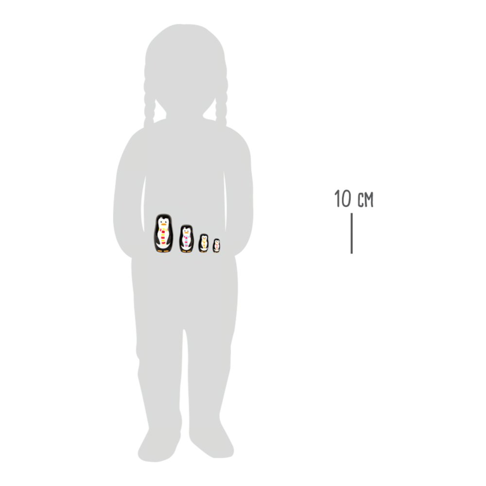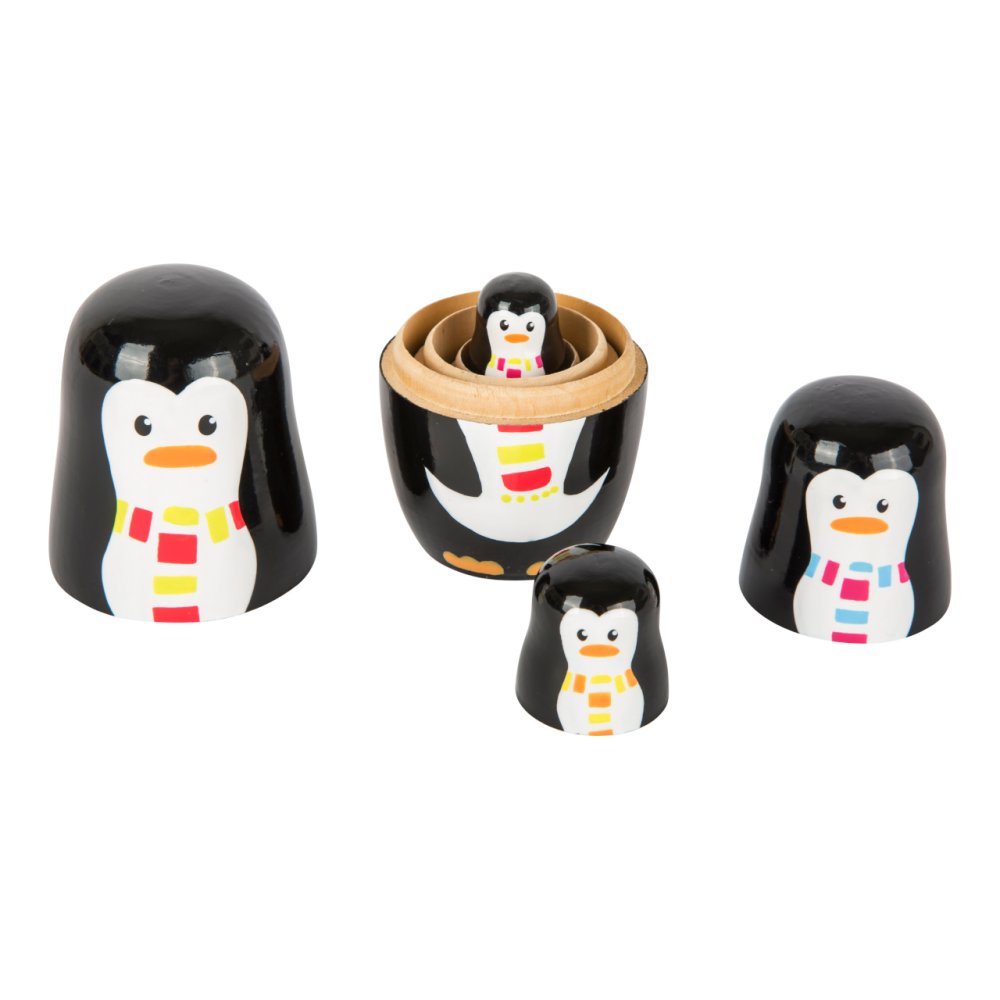 Cztery uroczo pomalowane figurki Matrioszka w kształcie rodziny pingwinów. Mniejsze pingwiny chowają się stopniowo w sobie, w zależności od wielkości. Te lalki łatwo otwierają się na środku, co jest świetnym ćwiczeniem koordynacji ręka-oko i umiejętności motorycznych. Figurki Matrioszki emanują swoim niepowtarzalnym urokiem i są urocze – atrakcyjny element przyciągający wzrok z dużym potencjałem edukacyjnym dla Twojego pokoju dziecięcego! Główne cechy: 4 figurki rodziny pingwinówrozwijają koordynację ręka-oko i zdolności motoryczne