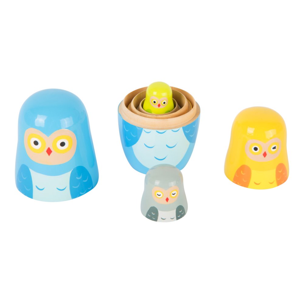 Cztery misternie malowane figurki Matrioszki w kształcie rodziny sów. Mniejsze sowy chowają się stopniowo w sobie w zależności od wielkości. Te lalki łatwo otwierają się na środku, co jest świetnym ćwiczeniem koordynacji ręka-oko i umiejętności motorycznych. Figurki Matrioszki emanują swoim niepowtarzalnym urokiem i są urocze – atrakcyjny element przyciągający wzrok z dużym potencjałem edukacyjnym dla Twojego pokoju dziecięcego! Główne cechy: 4 figurki sowyrozwijają koordynację ręka-oko i zdolności motoryczne