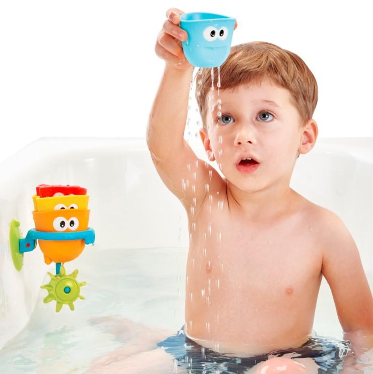 Trzy wymienne kubeczki z różnymi efektami wodnymi – tworzenie prysznica, obracanie śmigła, odkrywanie schowanego kubeczka. Uchwyt na kubeczki mocuje się do ściany wanny za pomocą przyssawki.Główne funkcje:- 3 kubeczki z różnymi efektami wodnymi.- Uchwyt służy do zabawy i przechowywania.Korzyści dla rozwoju dziecka:- Wspomaga rozwój zdolności motorycznych.- Wspomaga pomysłową zabawę.Porady dotyczące zabawy: twórz różne efekty wodne za pomocą kolorowych kubeczków.Zalecany wiek: od 8 miesięcyZawartość opakowania: 3 kubeczki, uchwyt.