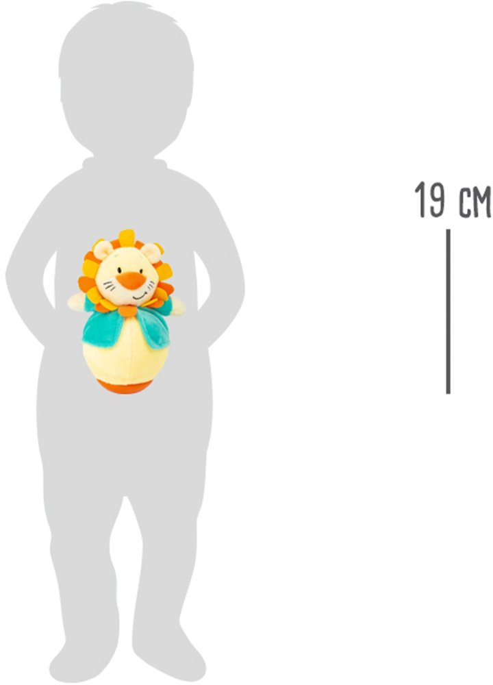 Pluszowy lew, którego pokochasz. Ten lew ma nietradycyjn&ą; podstawę. Kiedy go popchniesz, nie upadnie, ale zacznie się kołysać na boki, a następnie wróci do pozycji pionowej. Dzieci ucieszy również dzwoneczek, który ma ukryty w środku. Zabawka do aktywności motorycznej wspiera rozwój i jest doskonałym towarzyszem na macie do zabawy. Główne cechy: przyjemny, miękki pluszkołysze się dzięki wypukłej podstawie