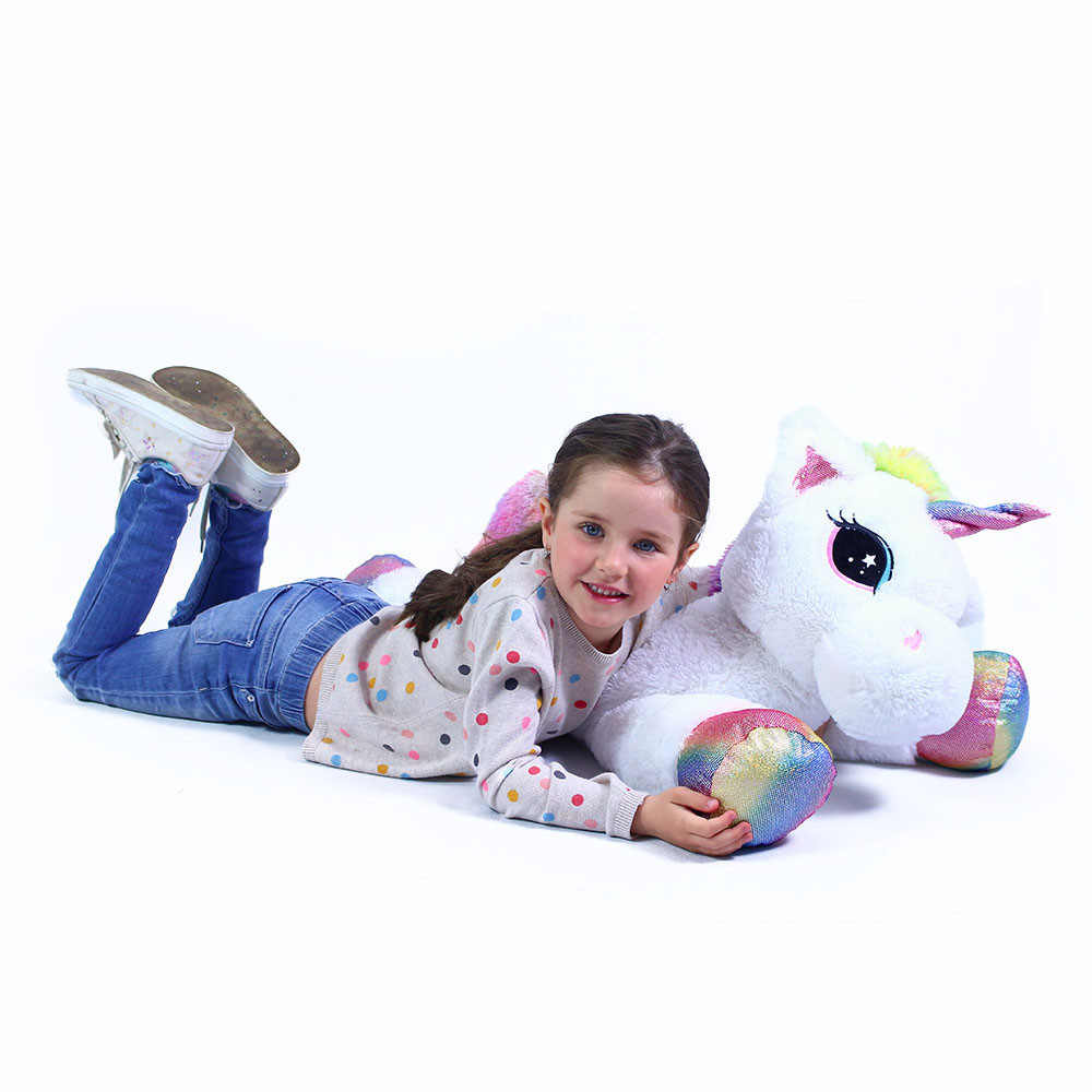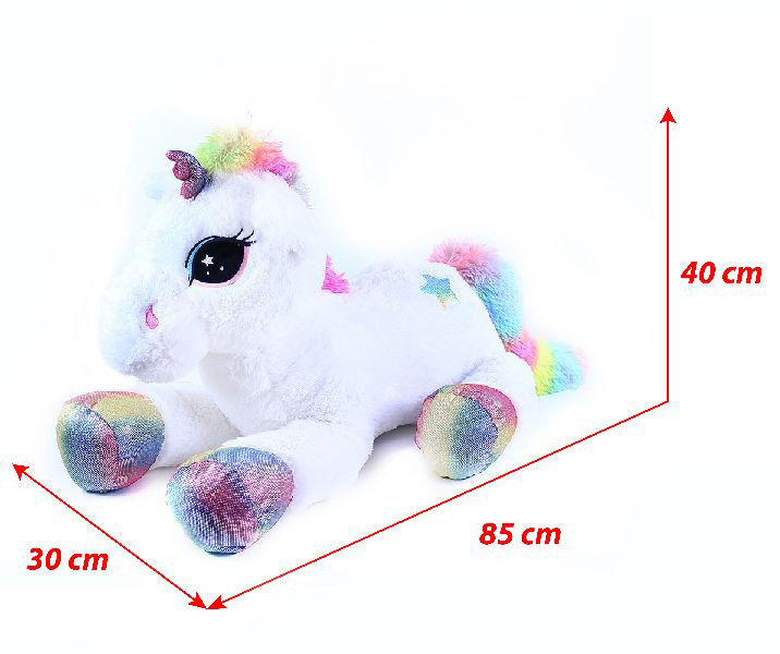Uroczy jednorożec magicznie zamieni każdy pokoik w królestwo z bajek. Dzięki swojemu rozmiarowi stanie się nieprzegapioną ozdobą i towarzyszem podczas zabaw i odpoczynku. Wykonany jest z wysokiej jakości, miękkiego pluszu. Wspaniały prezent dla małych i dużych księżniczek! Główne cechy: rozmiar 85 cmwysokiej jakości plusz