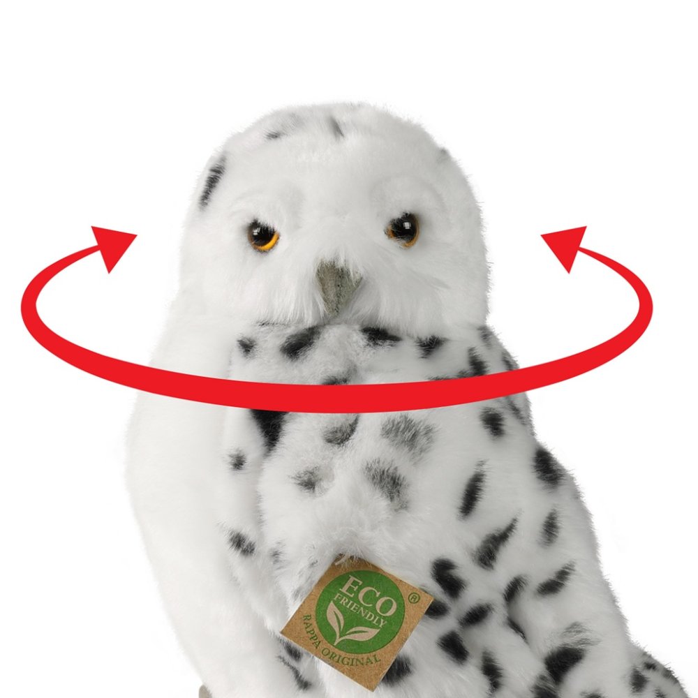 Pluszowa sowa śnieżna z obracającą się głową o wielkości 28 cm jest ręcznie uszyta z wysokiej jakości miękkiego pluszu, dzięki czemu wygląda jak żywa. Ten pluszowy element to idealny prezent dla wszystkich miłośników mięciutkich pluszaków. Jest częścią ekskluzywnej kolekcji pluszowych zabawek marki RAPPA. Główne cechy: realistyczne zwierzątkoręczne wykonaniewysokiej jakości pluszWypełnienie ECO-FRIENDLY Co właściwie oznacza ECO‑FRIENDLY? Wypełnienie pluszowej zabawki jest wykonane z recyklingowanych butelek PET. Materiał ten jest całkowicie bezpieczny, w dotyku nie do odróżnienia od standardowego wypełnienia i w pełni atestowany pod względem bezpieczeństwa nawet dla najmłodszych. Zdecydowaliśmy się podążać zieloną ścieżką, która w jak najmniejszym stopniu obciąża środowisko – ścieżką ECO‑FRIENDLY.