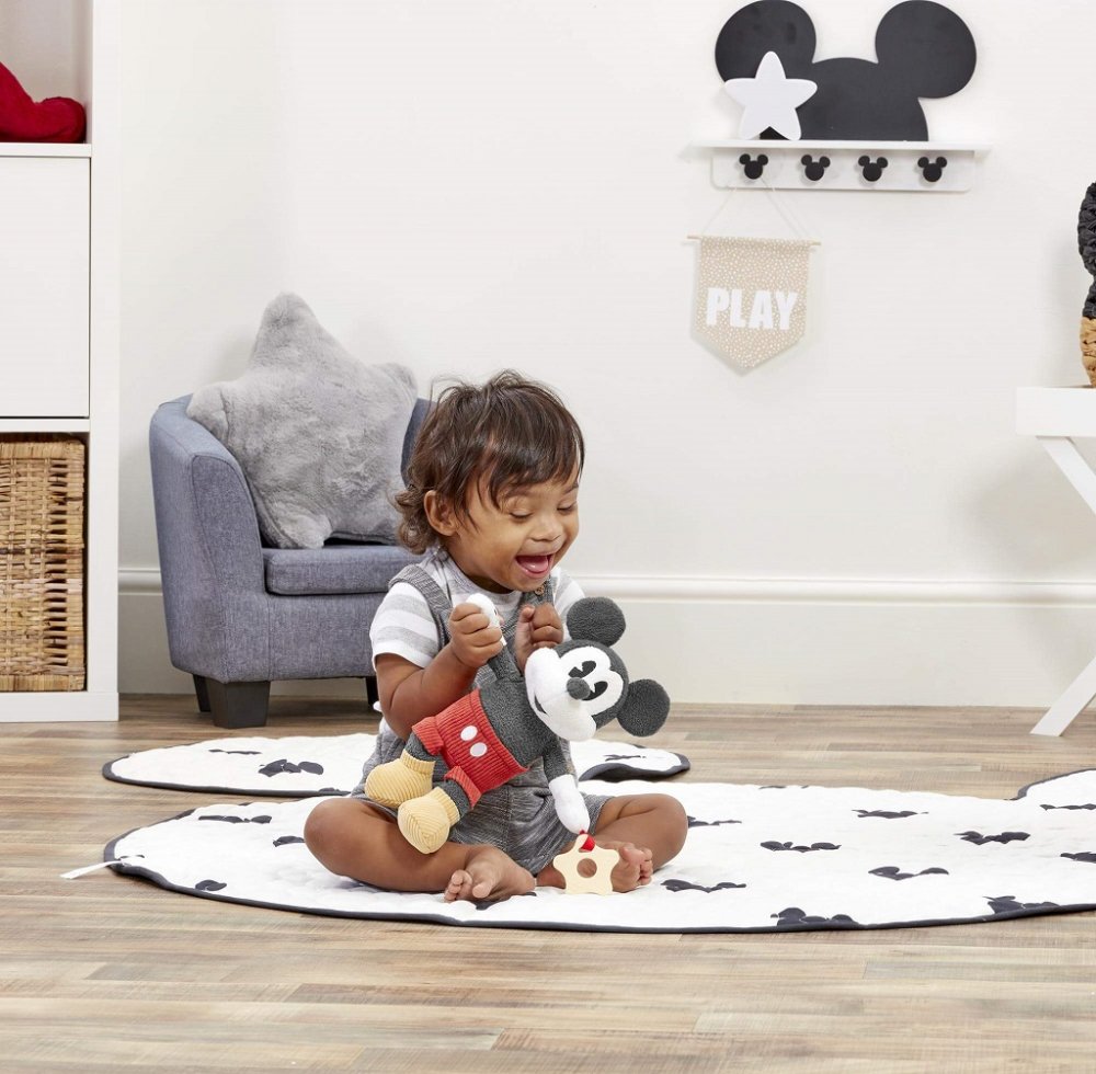 Baw się z Mickey! Dzięki zabawnej pluszowej zabawce Disney Mickey Mouse Activity możesz cieszyć się mnóstwem zabawy i gier. Rozbudź wyobraźnię swojego malucha dzięki tej super miękkiej zabawce Activity o wysokości 19 cm, która celebruje jedną z najsłynniejszych postaci z kreskówek na świecie wszech czasów. Ta super pluszowa zabawka Mickey Mouse, uwielbiana przez pokolenia od 1928 roku, która oddaje jego kultowe cechy i optymistyczne, odważne i urocze właściwości, jest idealnym partnerem do zabawy dla przygód Twojego malucha! Gryzak w kształcie gwiazdy, który jest odpowiedni od urodzenia, jest przymocowany do ręki Mickey'ego. Mickey jest ubrany w czerwone spodenki i ma żółte pomarszczone buty, które u dzieci wspierają dotykowe i sensoryczne poznawanie poprzez zabawę. Ta zabawka również pomaga w rozwoju umiejętności motorycznych. Mickey Mouse jest również doskonałym pluszowym przyjacielem, z którym możesz cieszyć się opowiadaniem historii lub po prostu przytulić się przed snem. Główne cechy: odpowiednie od urodzeniaIdealny jako prezent dla noworodkawspomaga rozwój zmysłówwspomaga wczesne umiejętności motorycznepluszowa zabawka interaktywna z gryzakiem